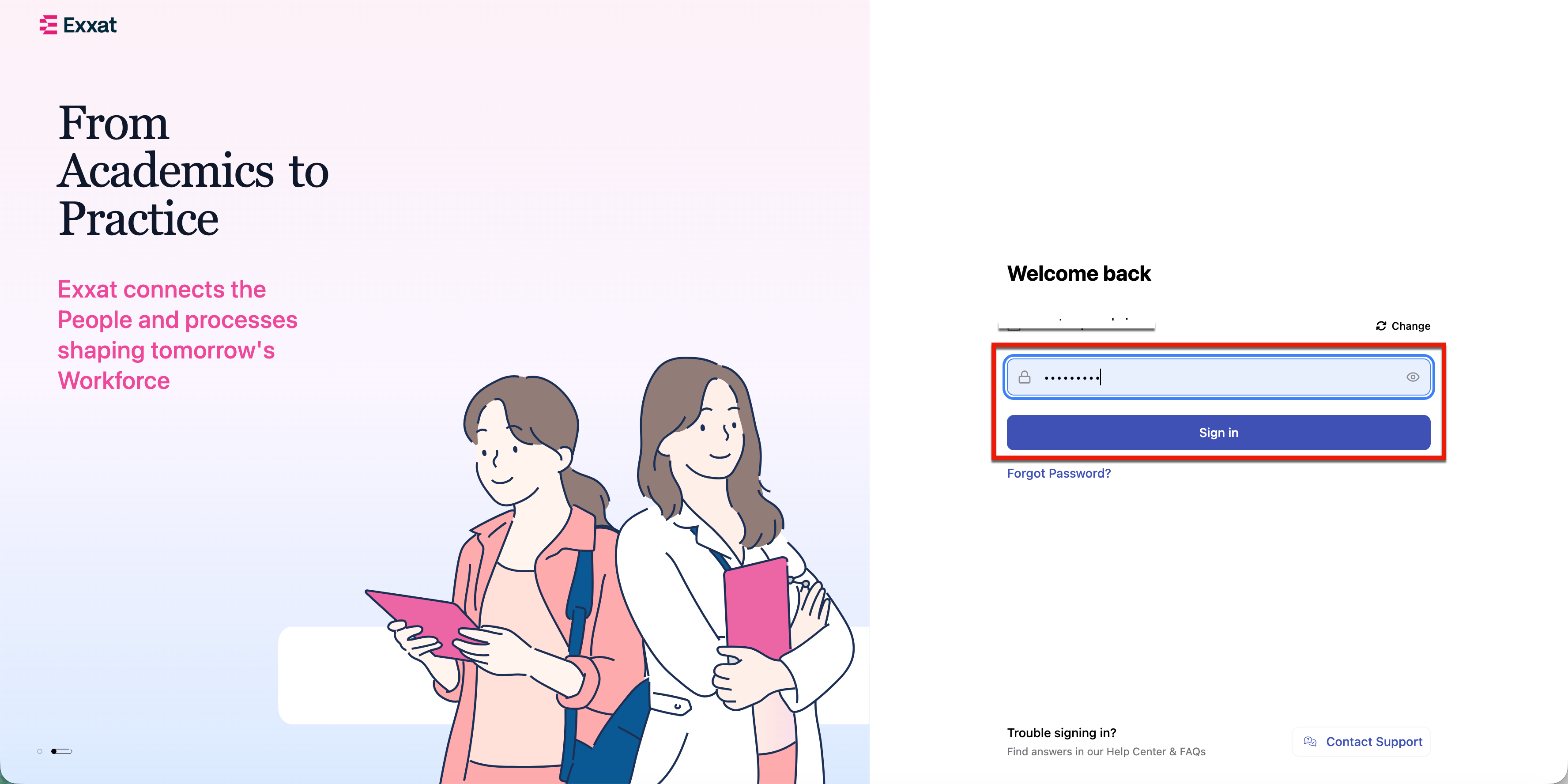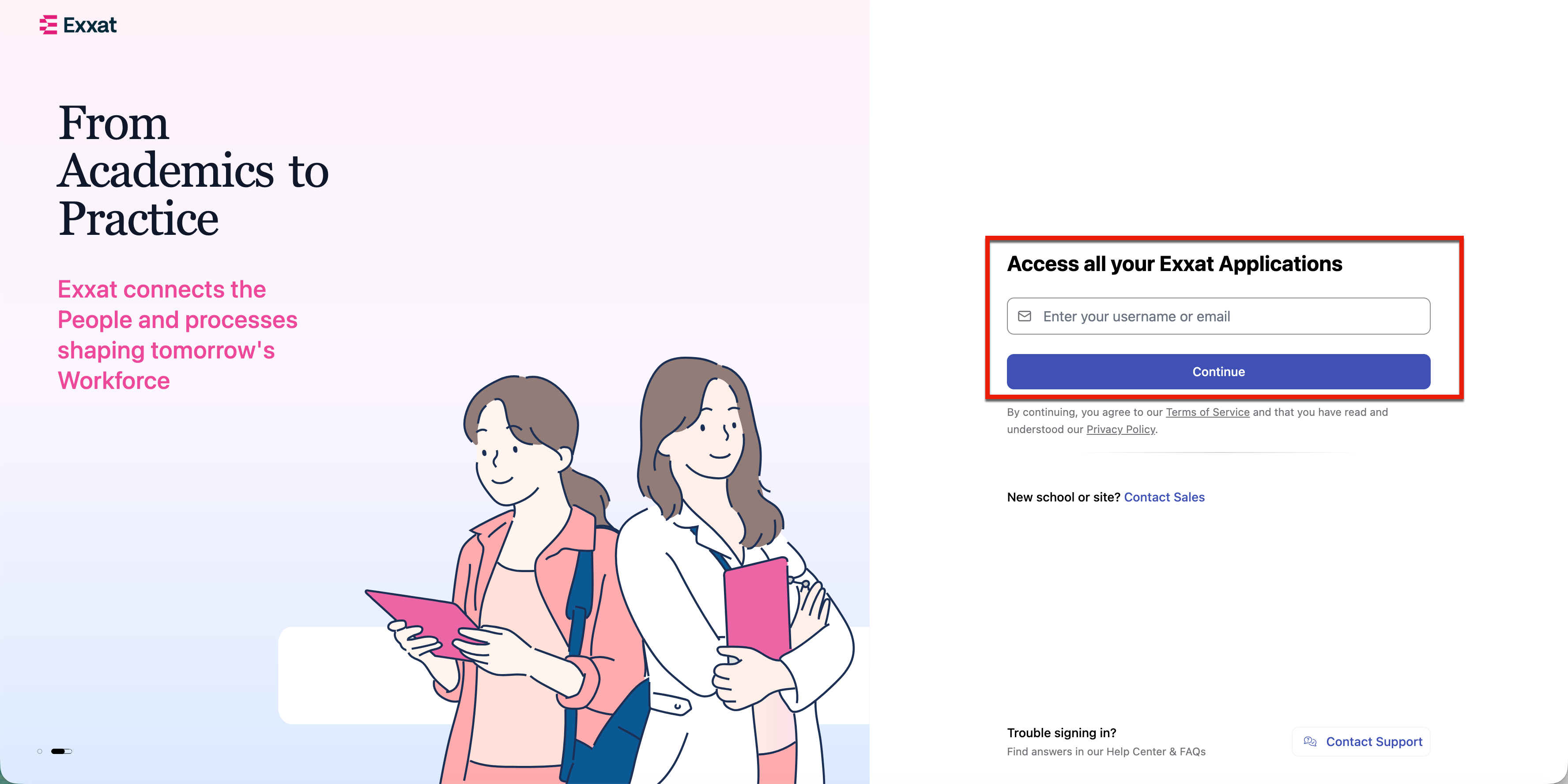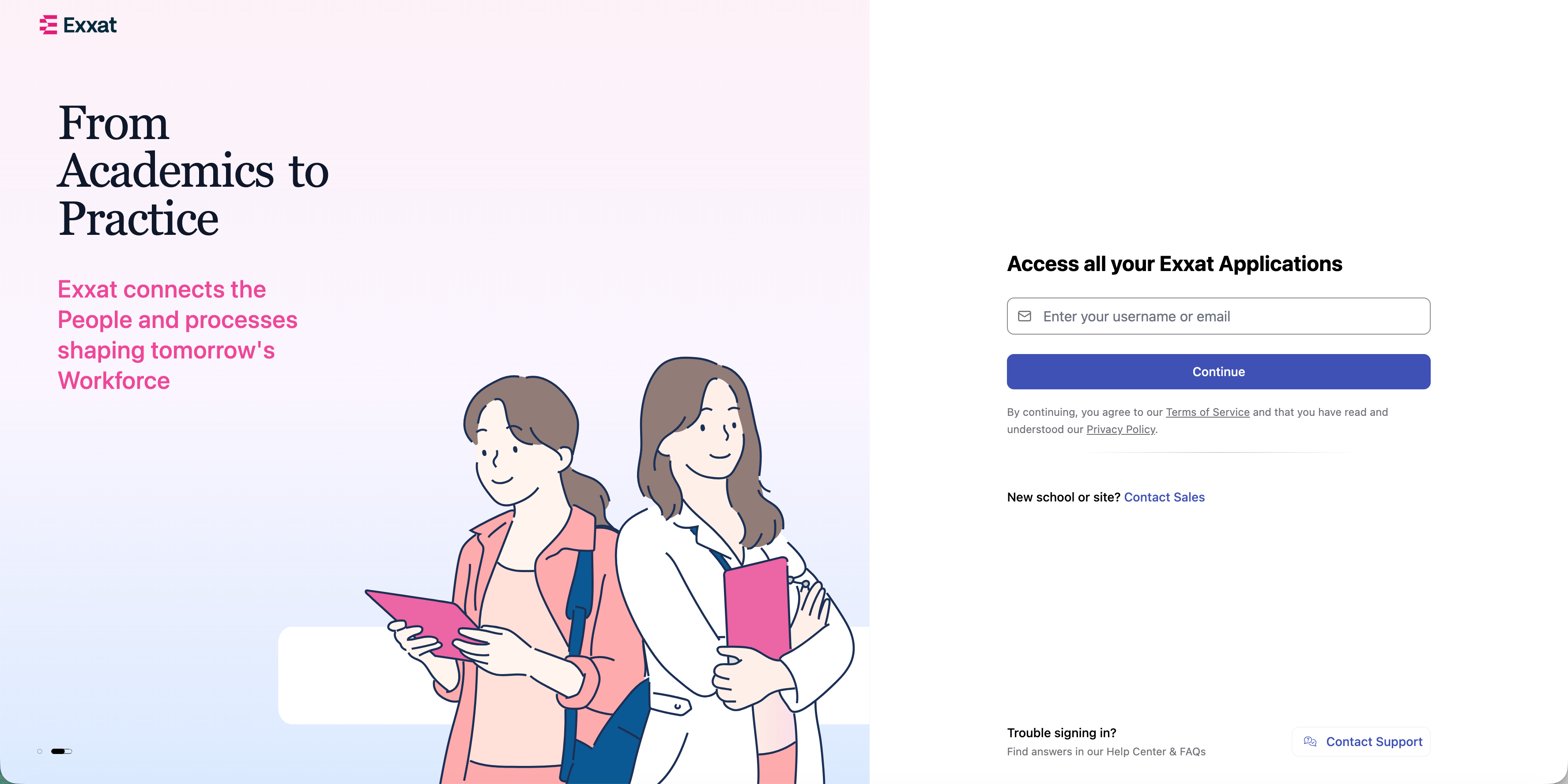 Click on the provided link in the email to be redirected to the Exxat login page or manually visit login.exxat.com.