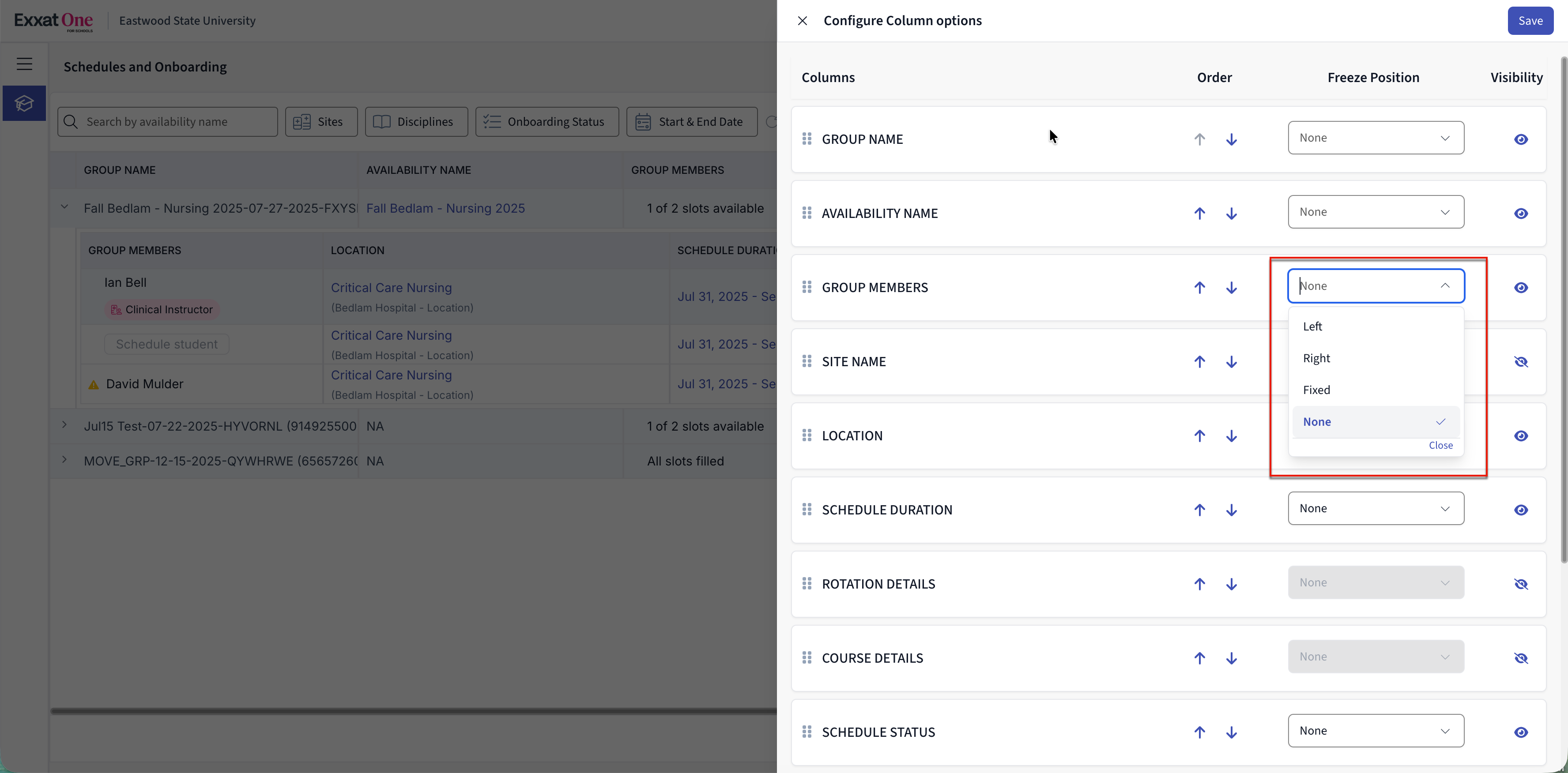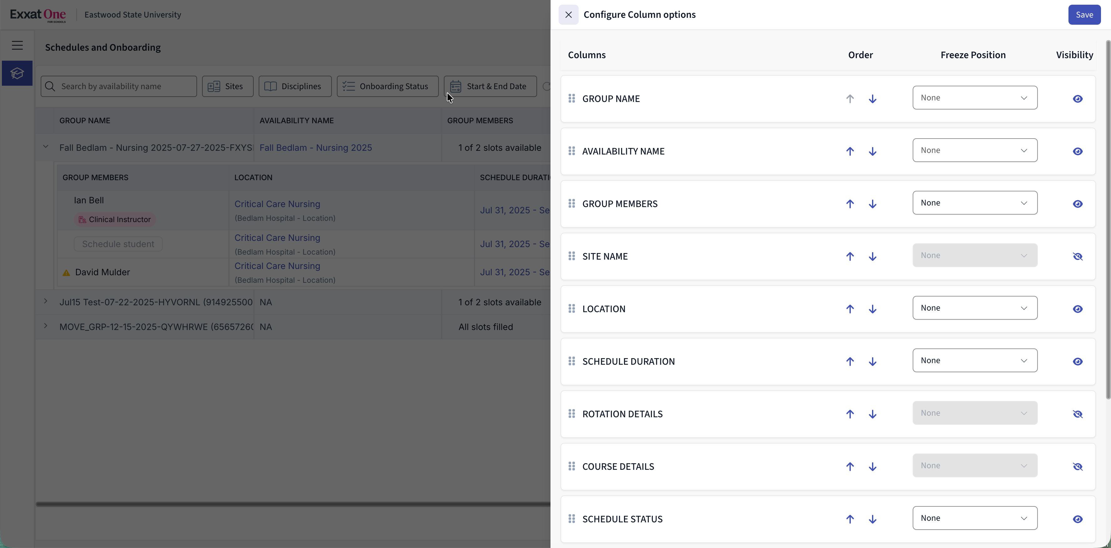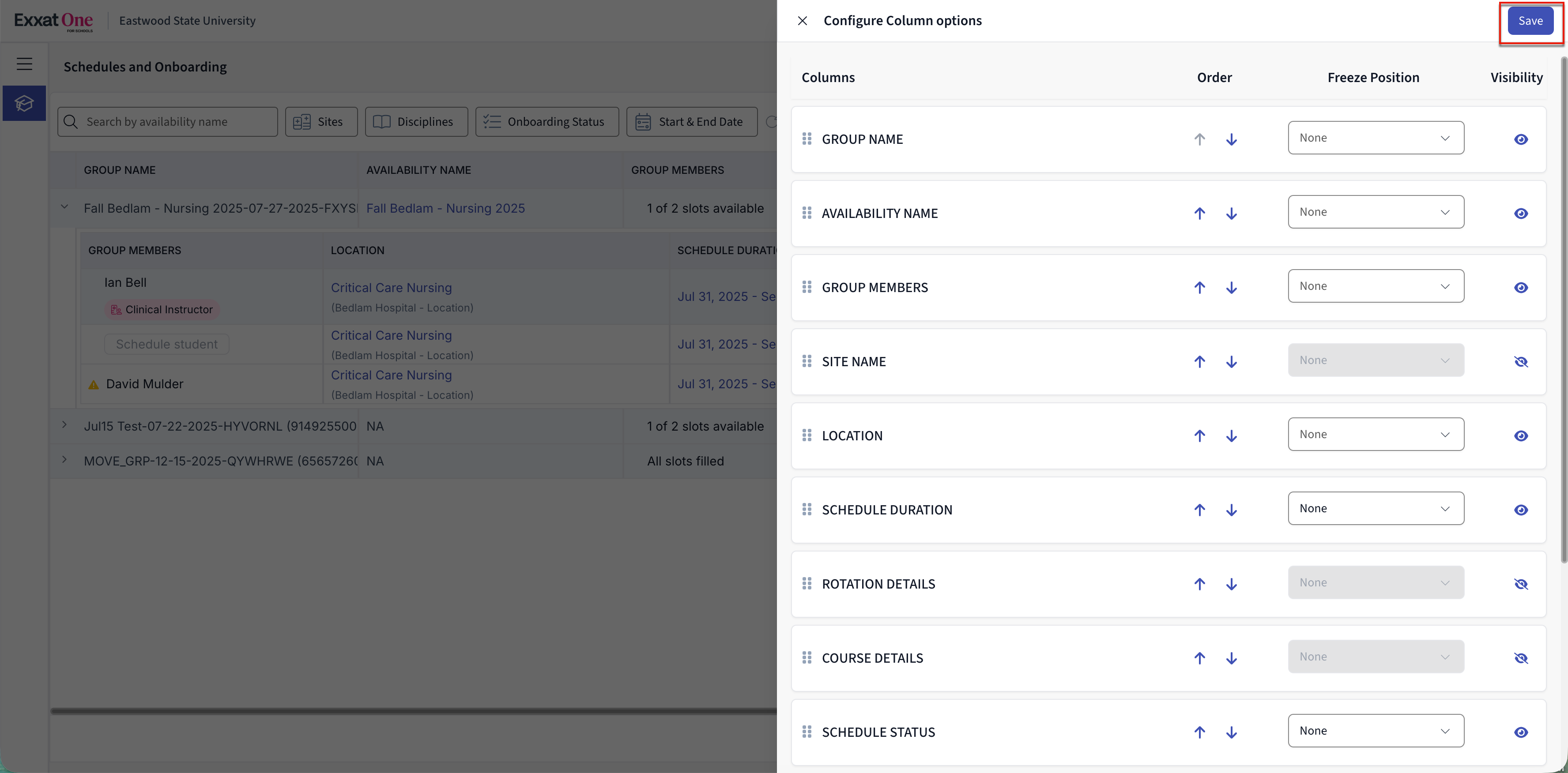- Your customised layout is immediately applied to the Schedules and Onboarding grid.