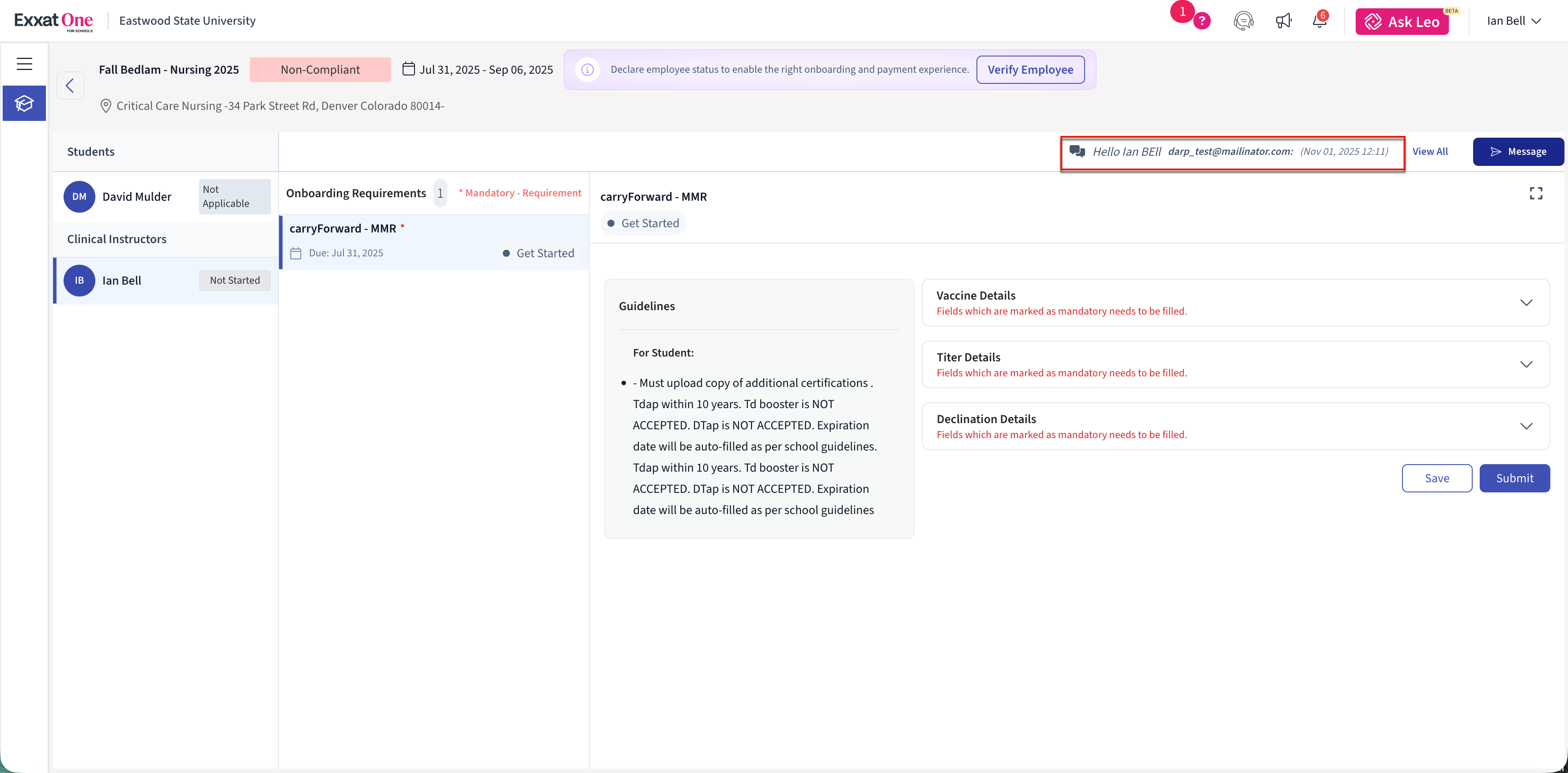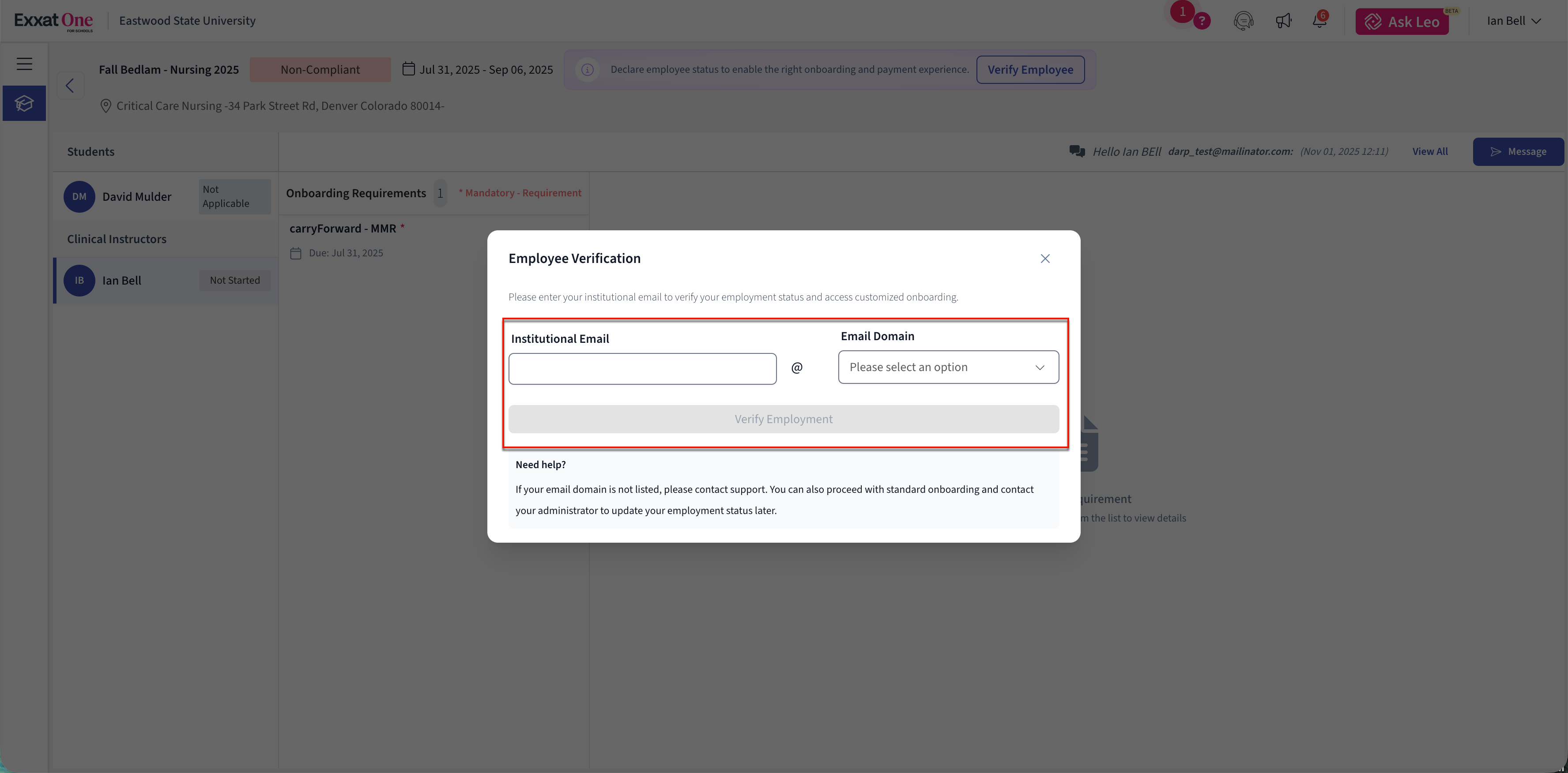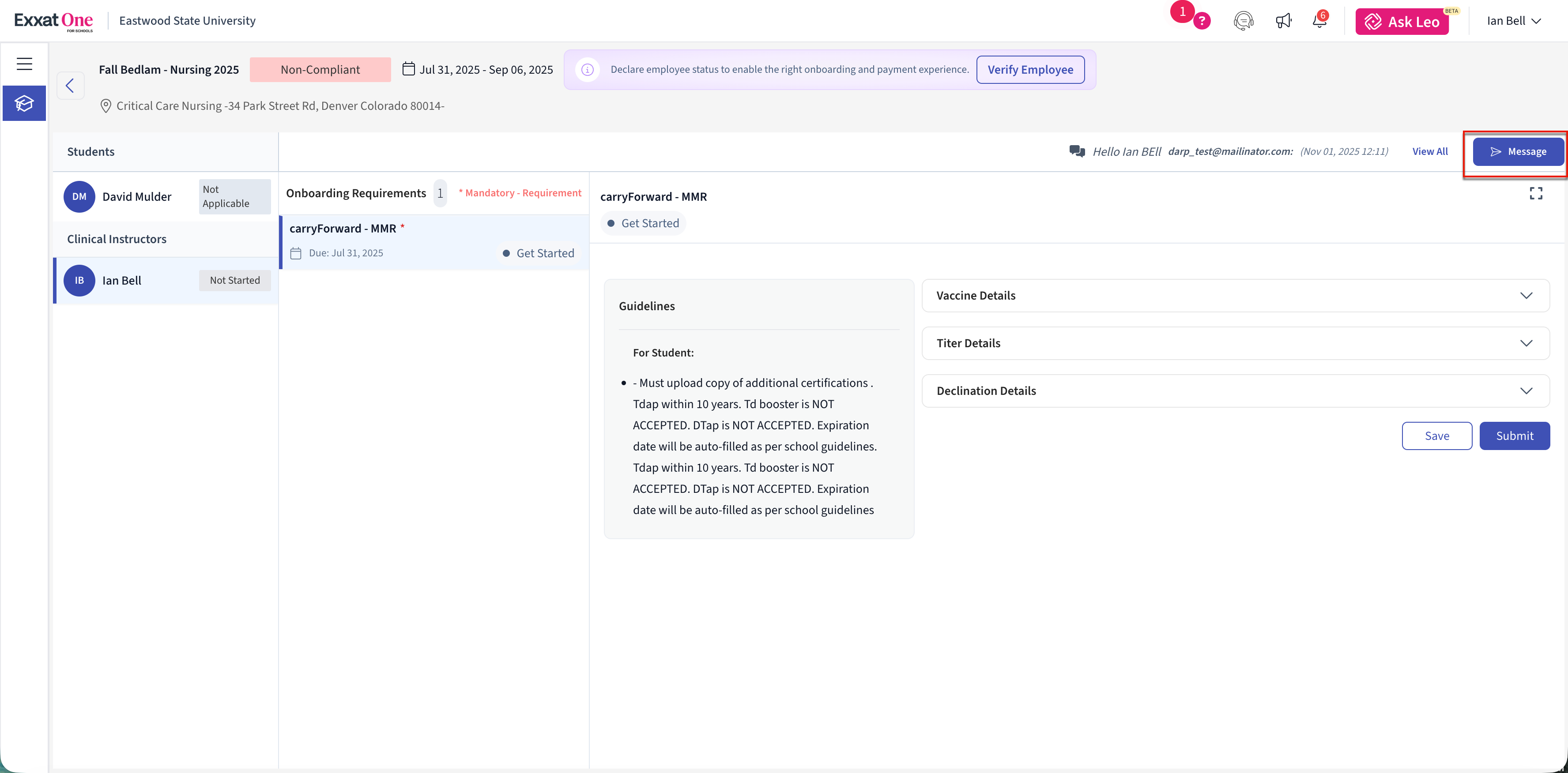 - Click on your own name under Clinical Instructors to view and complete your own onboarding requirements (if applicable).