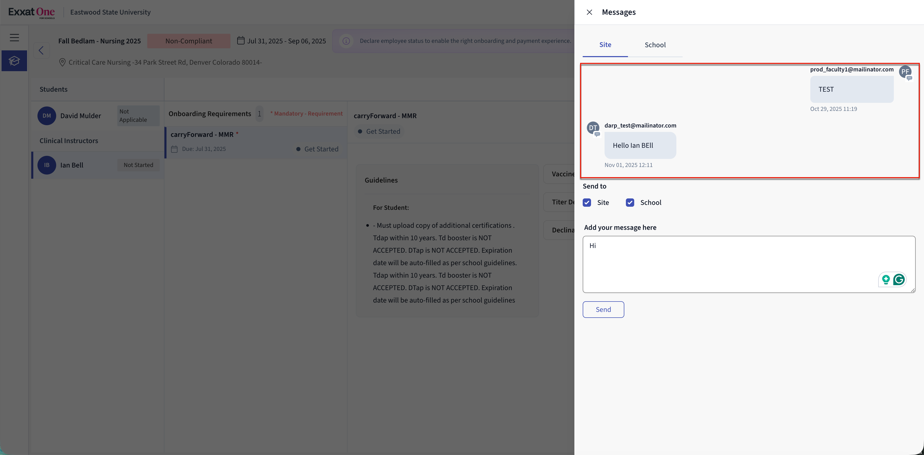 - All sent and received messages related to the schedule or onboarding context appear within the Messages Drawer.