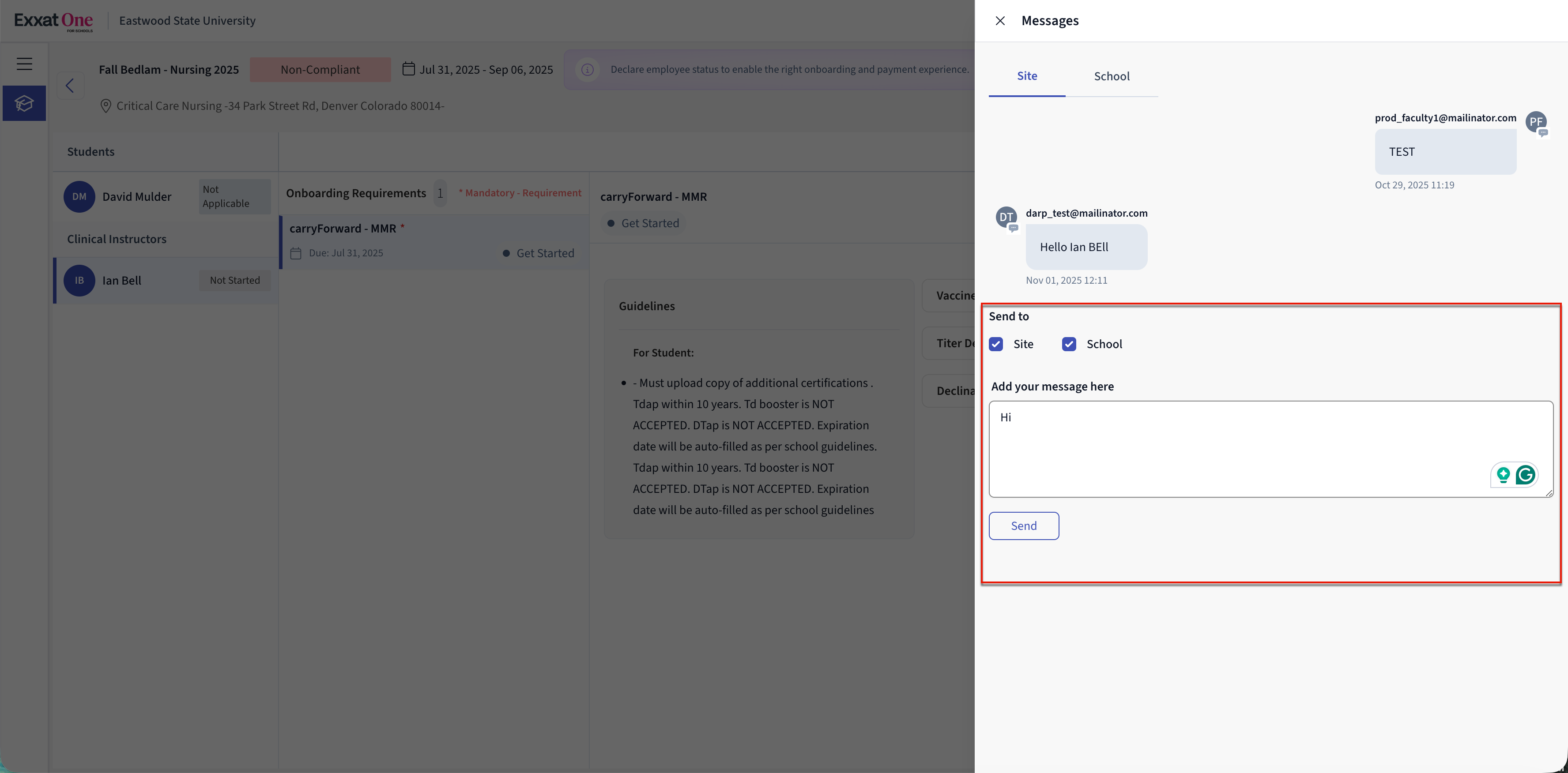 Note: If a student is not confirmed, only the Site and School options will be available for messaging.