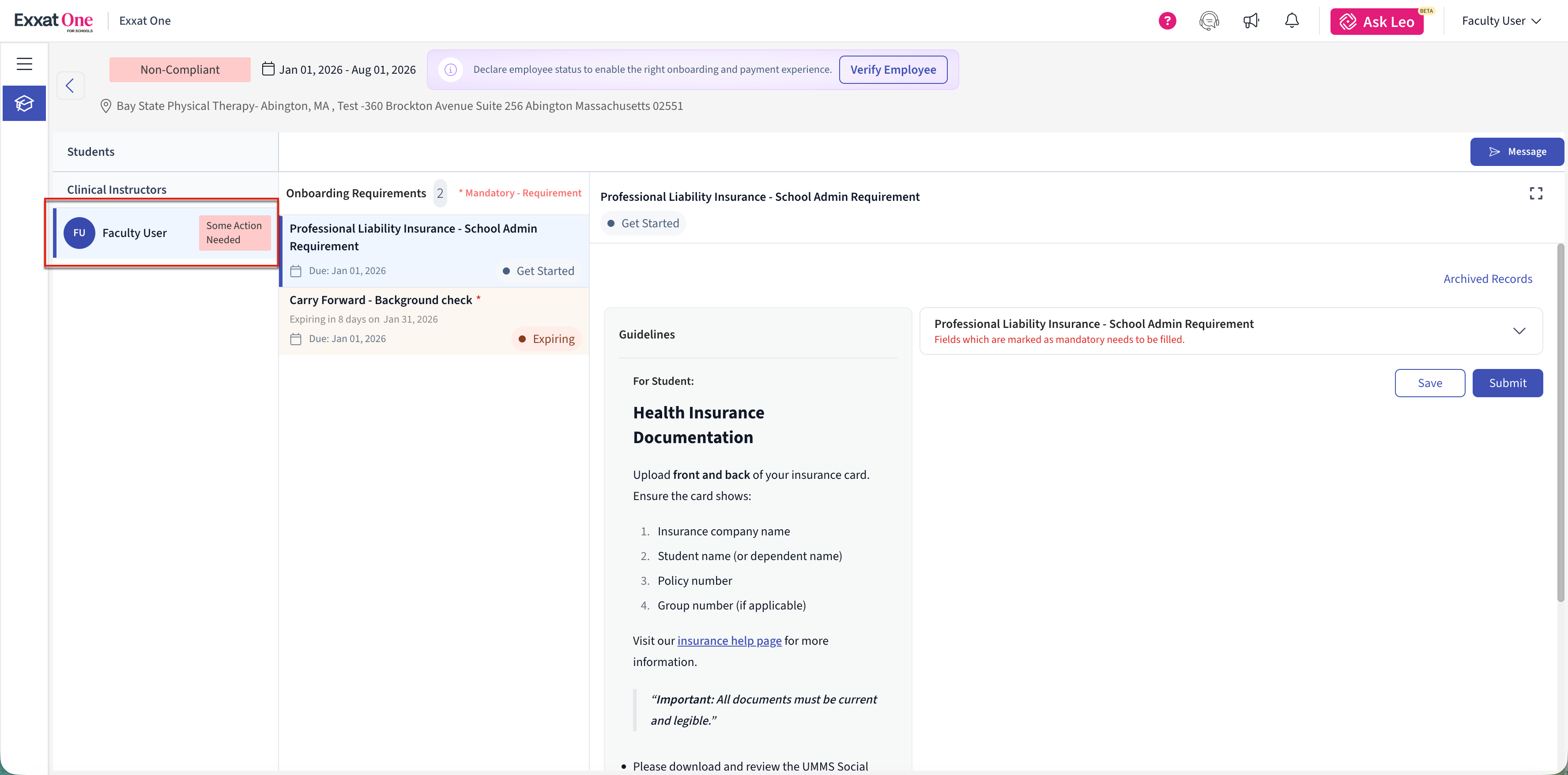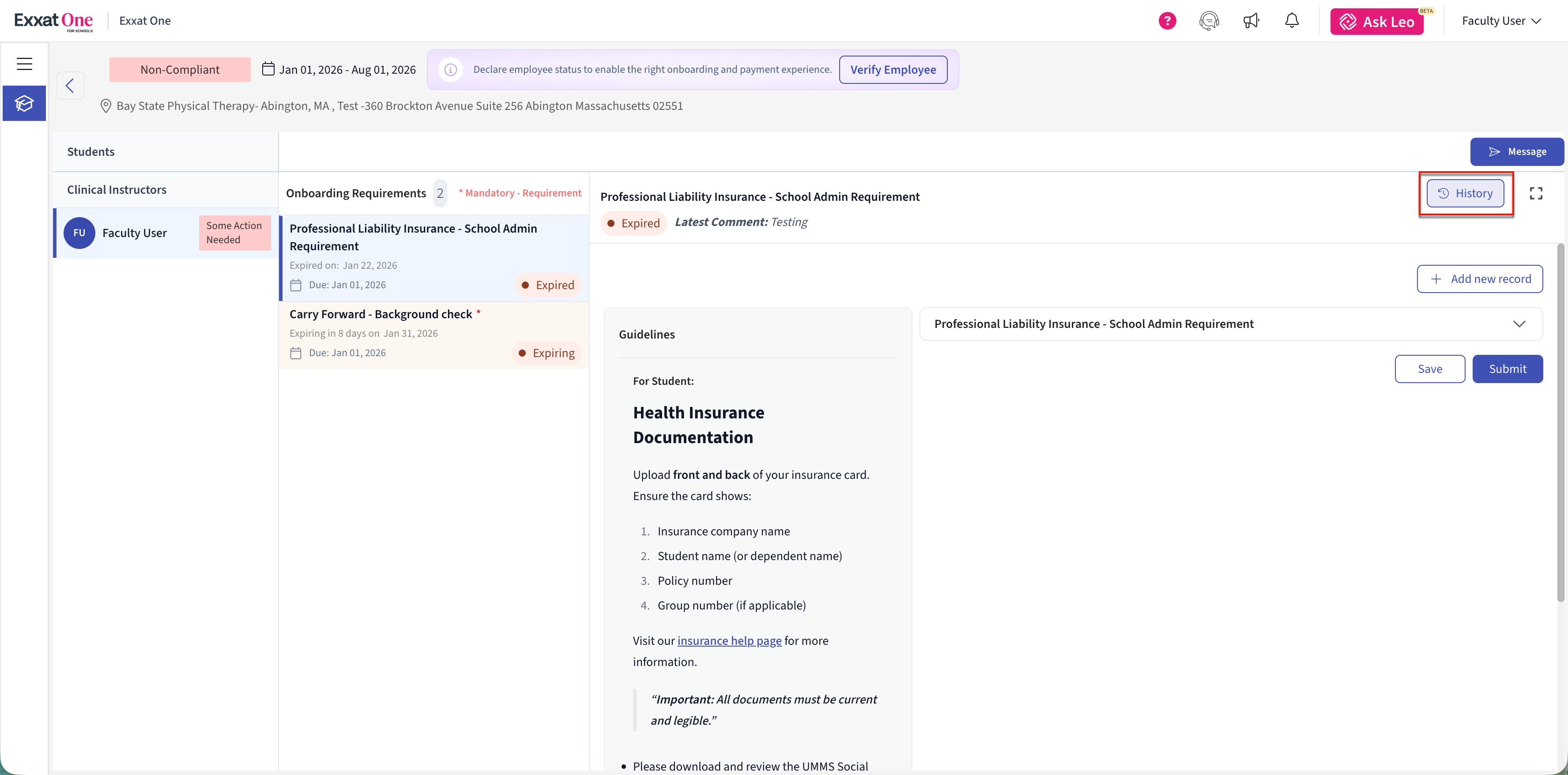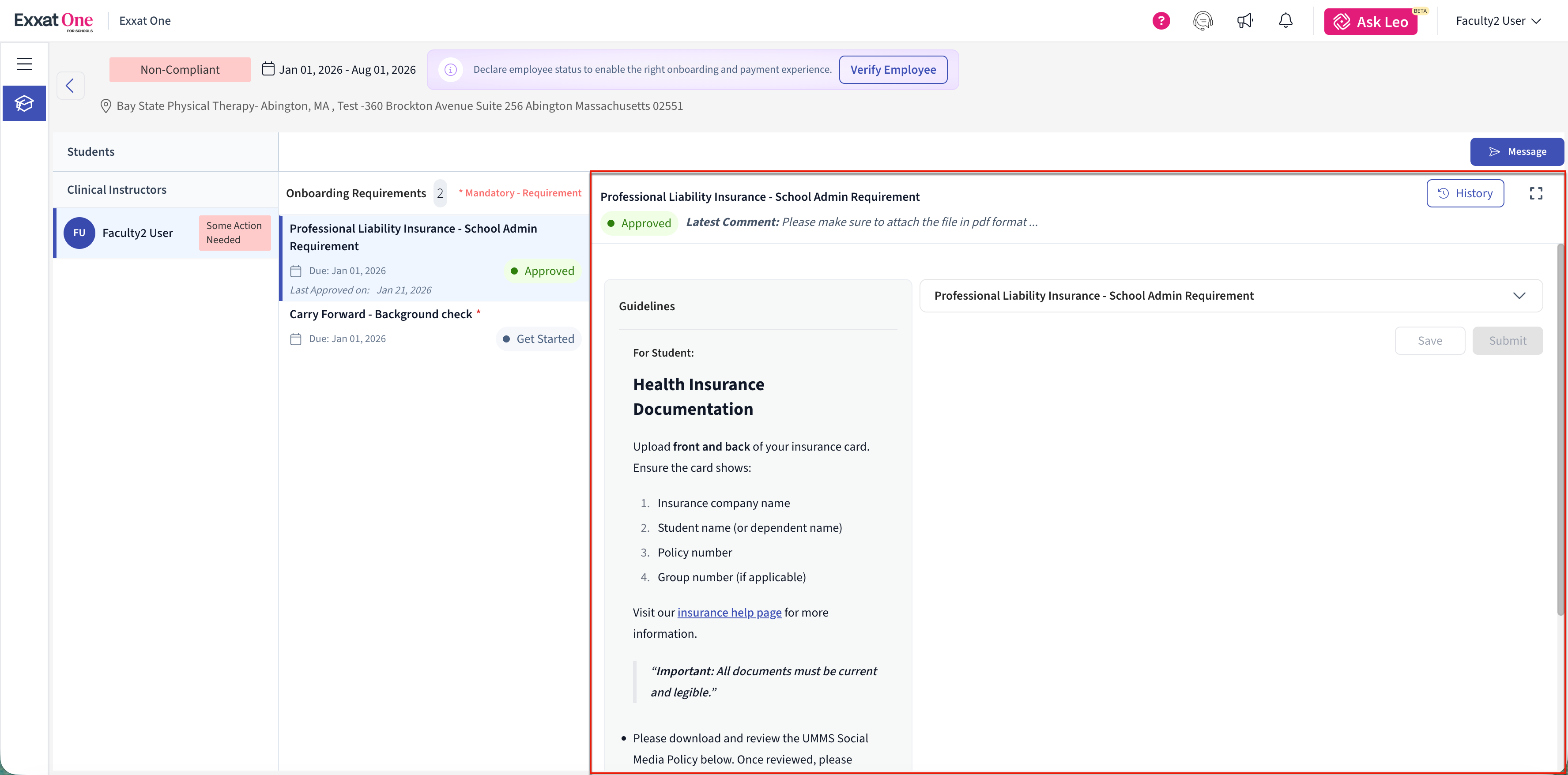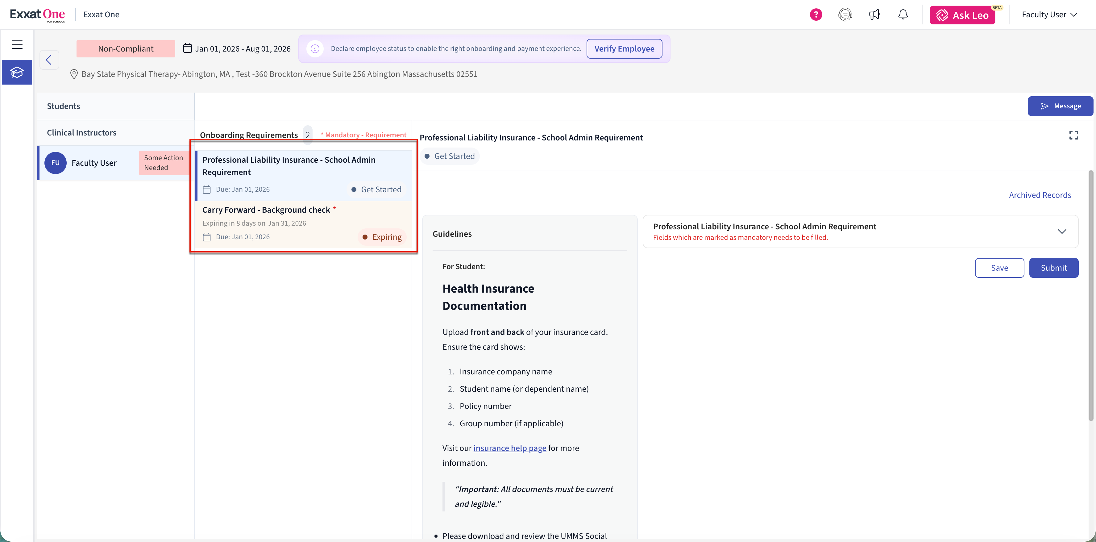 Clinical Instructors can update their own expiring or expired onboarding requirements.