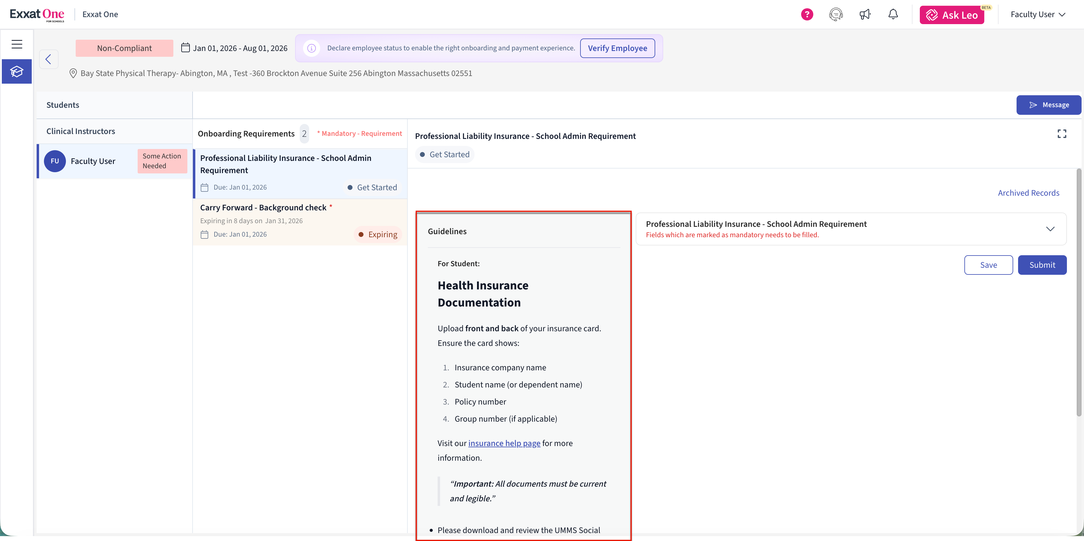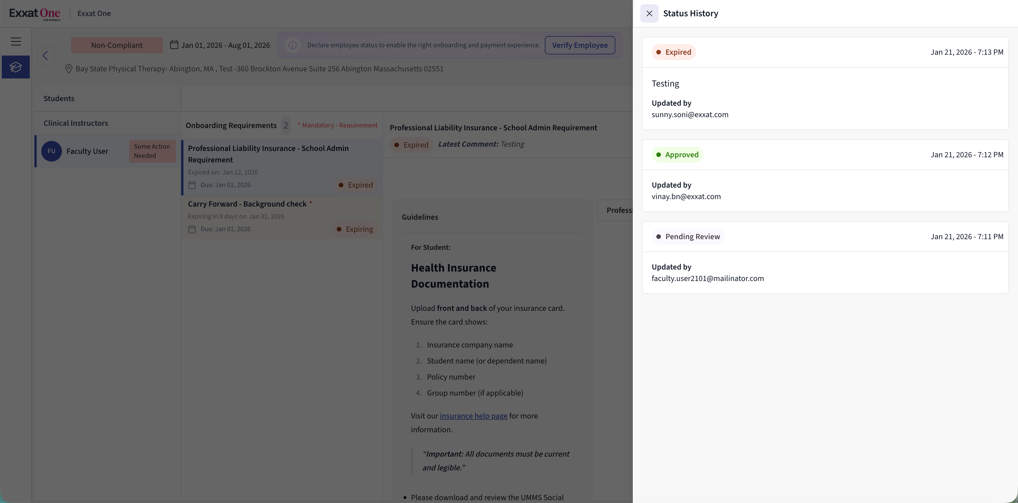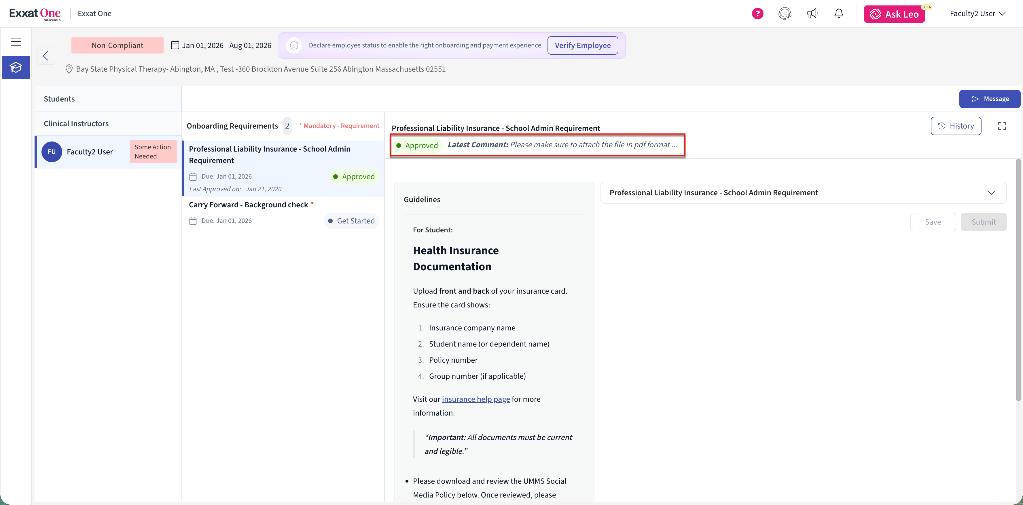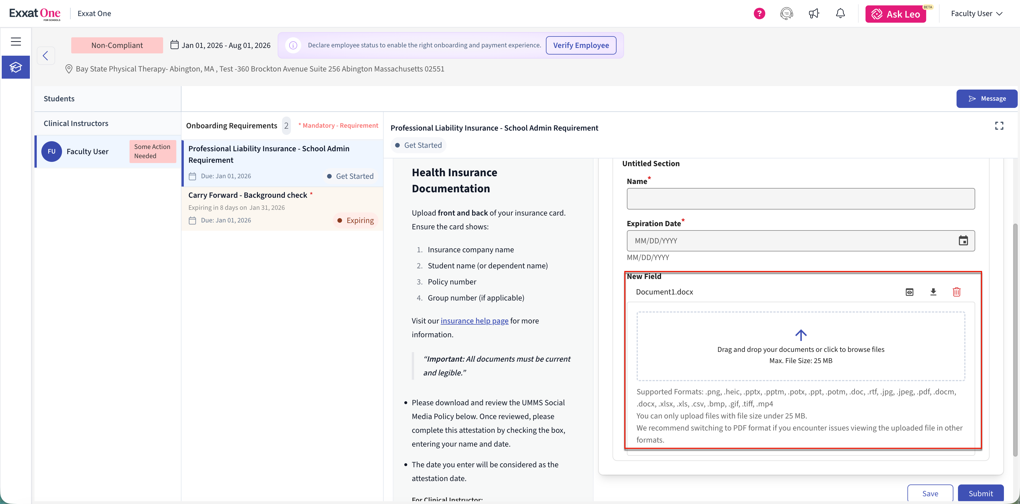 Clinical Instructors can update their own expiring or expired onboarding requirements.