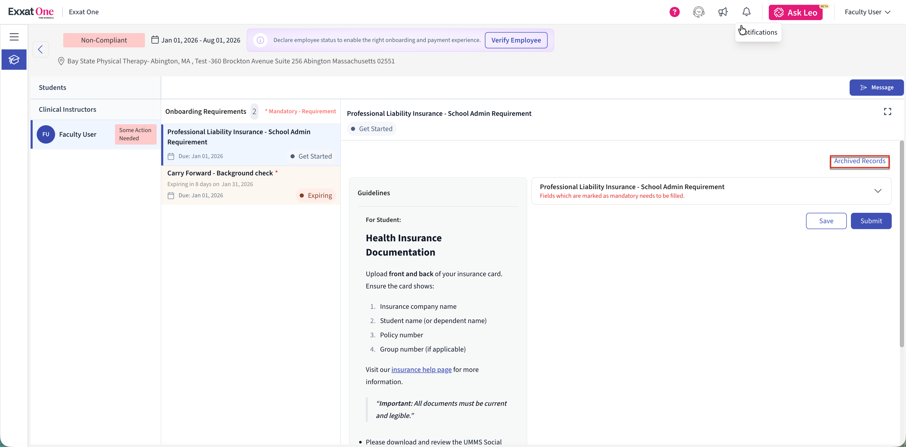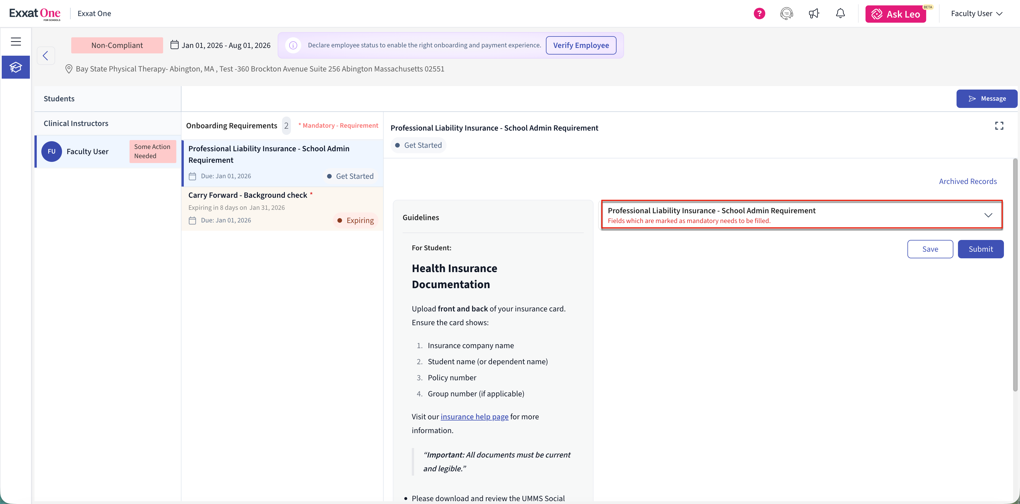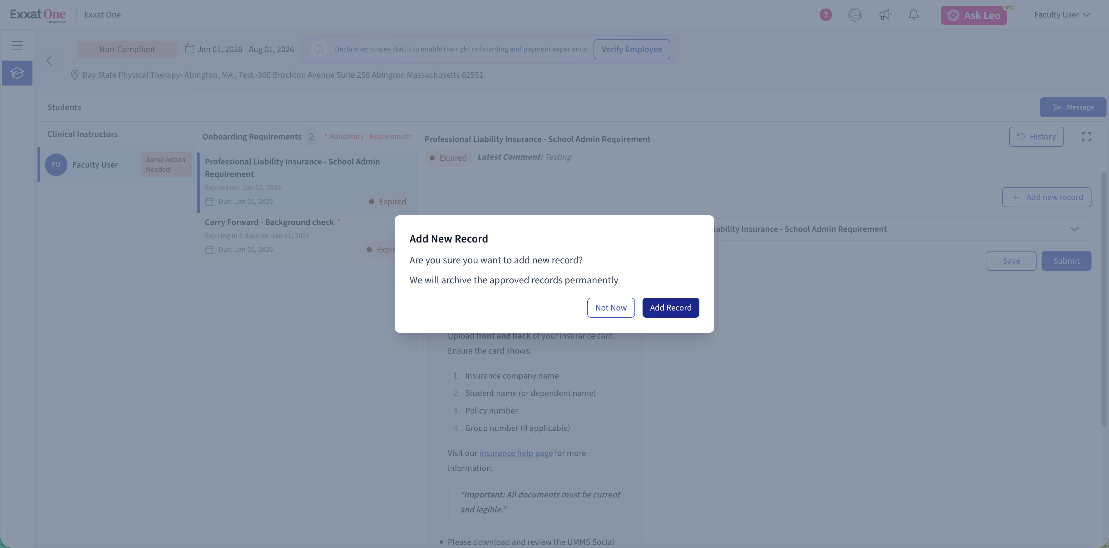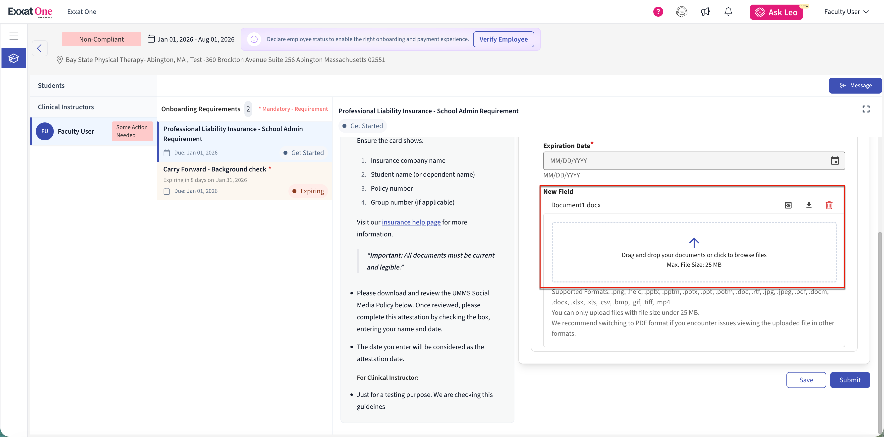 Clinical Instructors can update their own expiring or expired onboarding requirements.