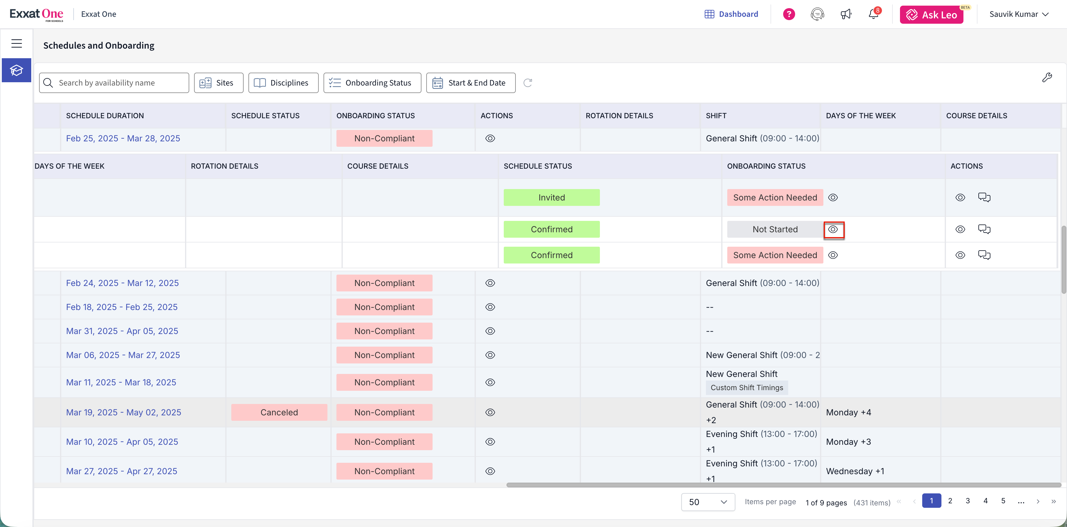 Click the View (eye) icon next to the onboarding status to open the onboarding screen.