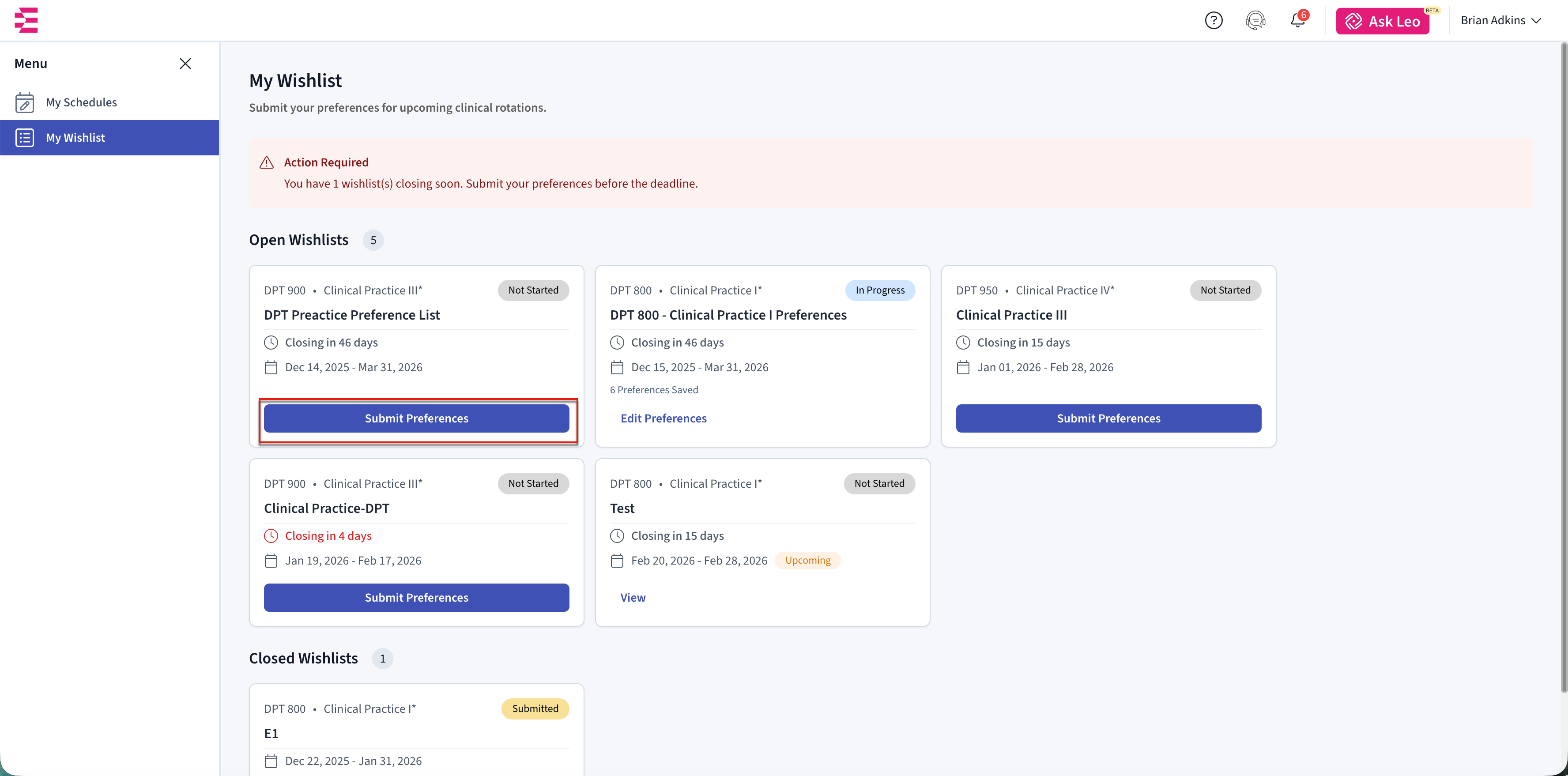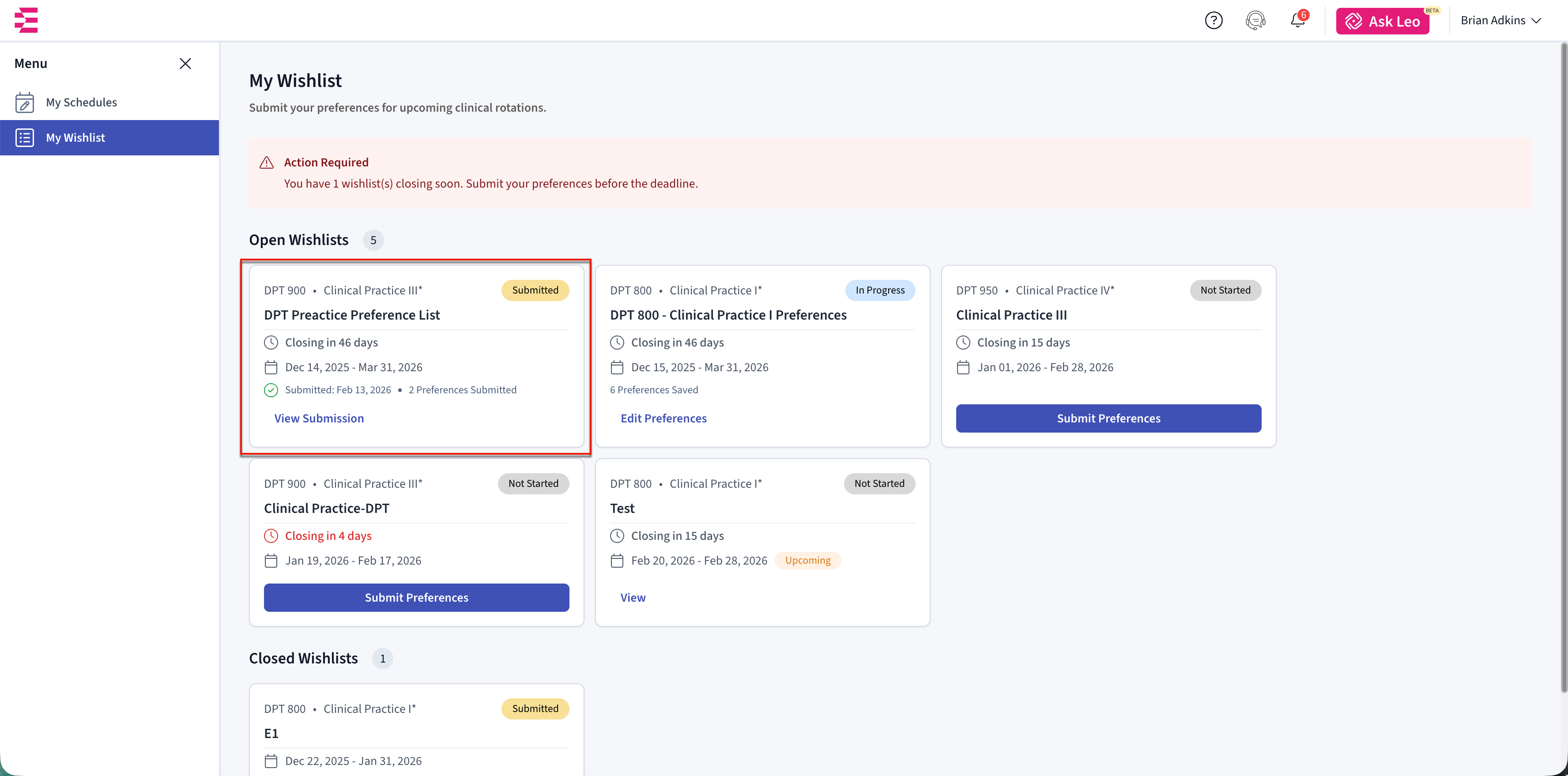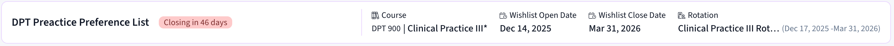 The Wishlist in Exxat One is how your school collects your placement preferences for upcoming clinical rotations. Your school sets up the Wishlist using information from Exxat Prism and decides when it opens and closes, how many preferences you can choose, and which opportunities are available to you.
