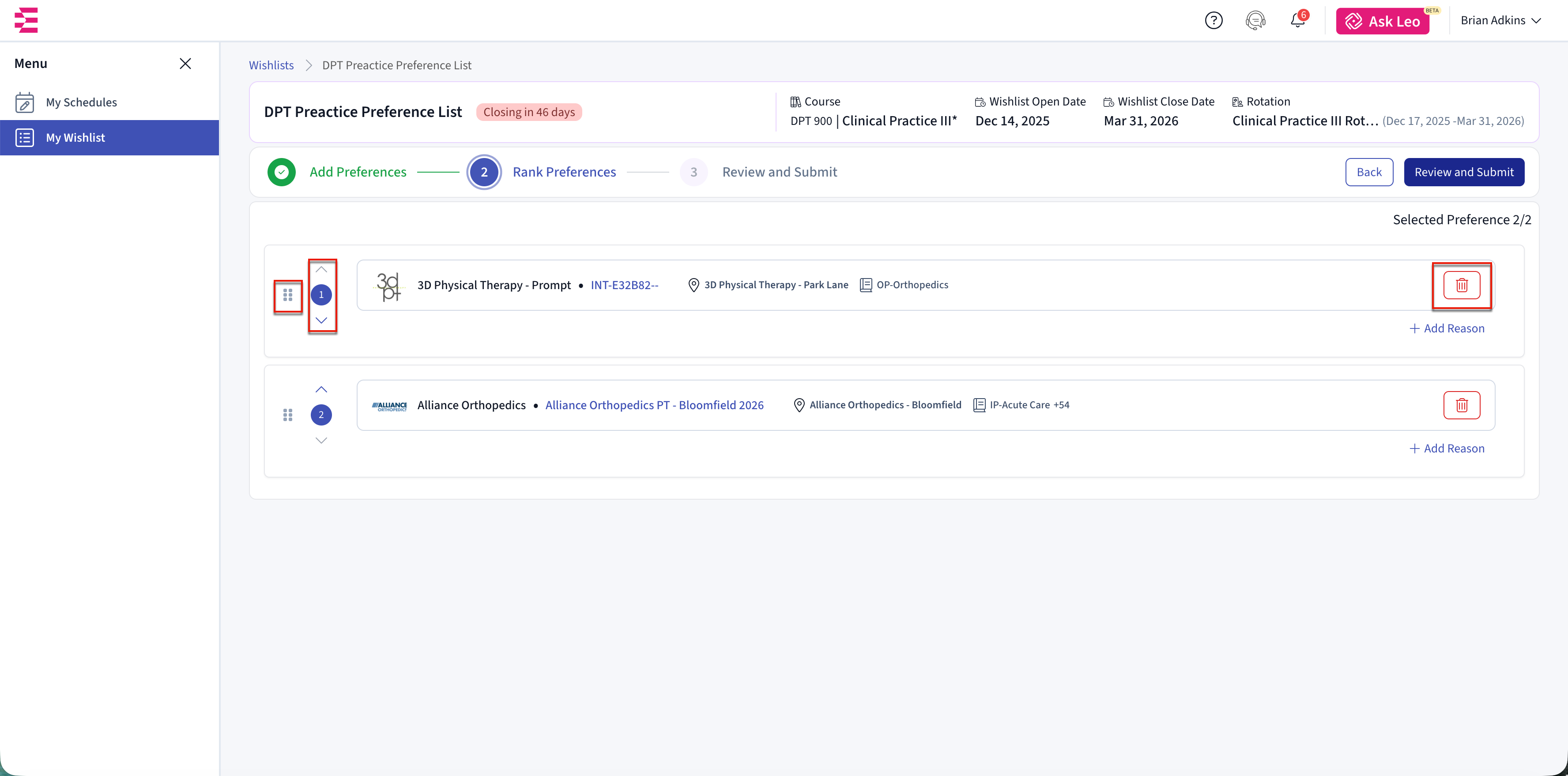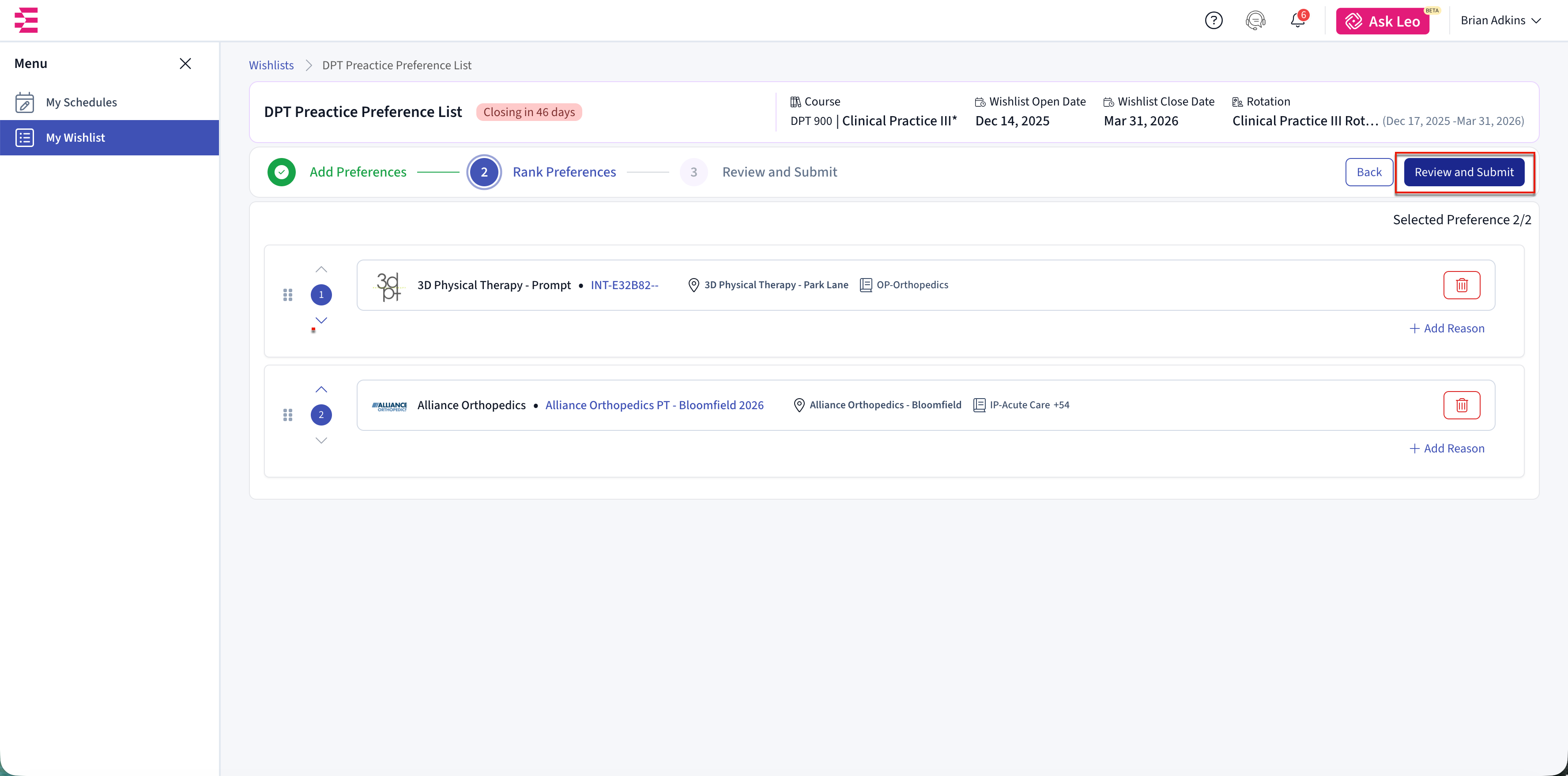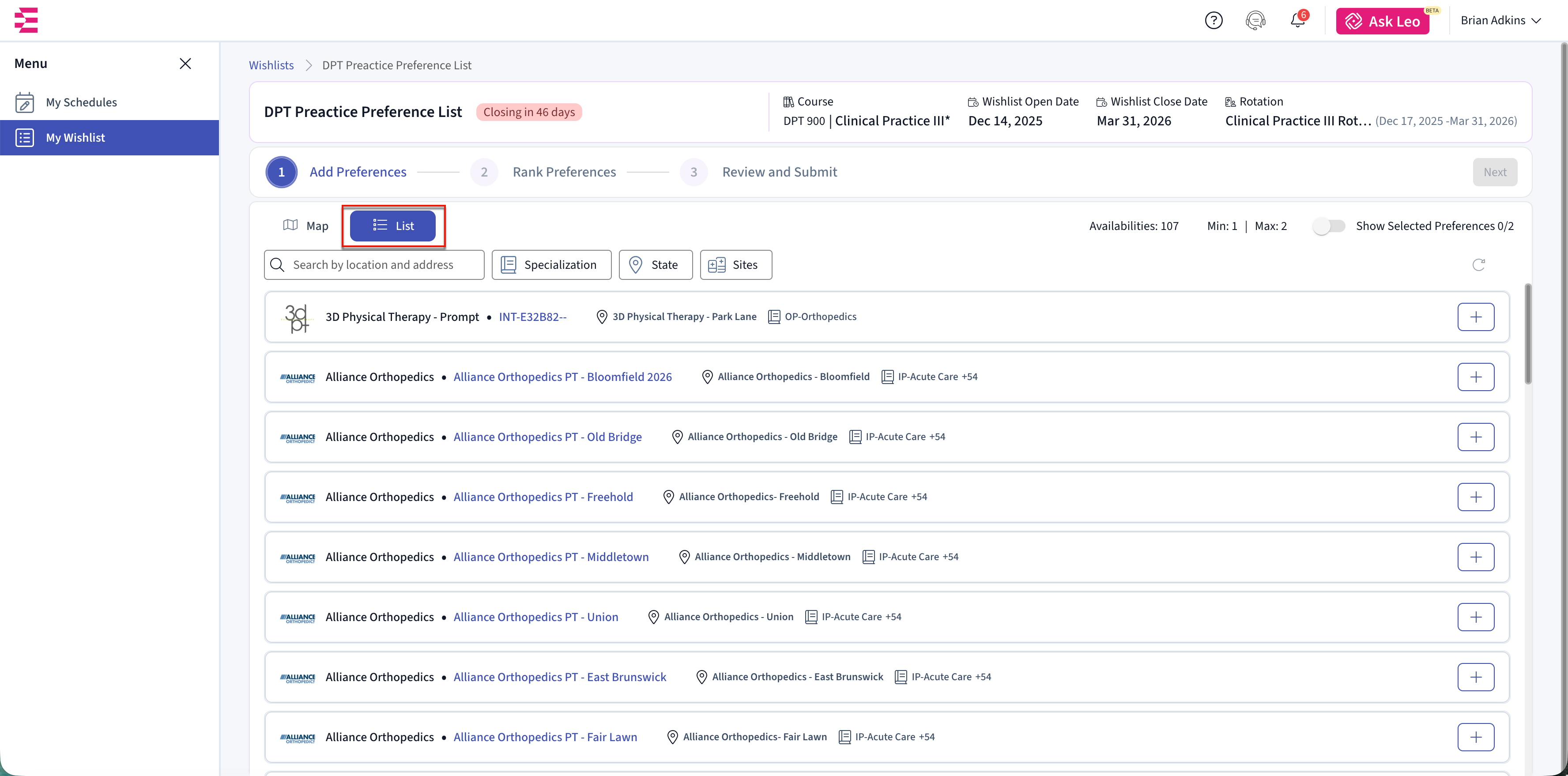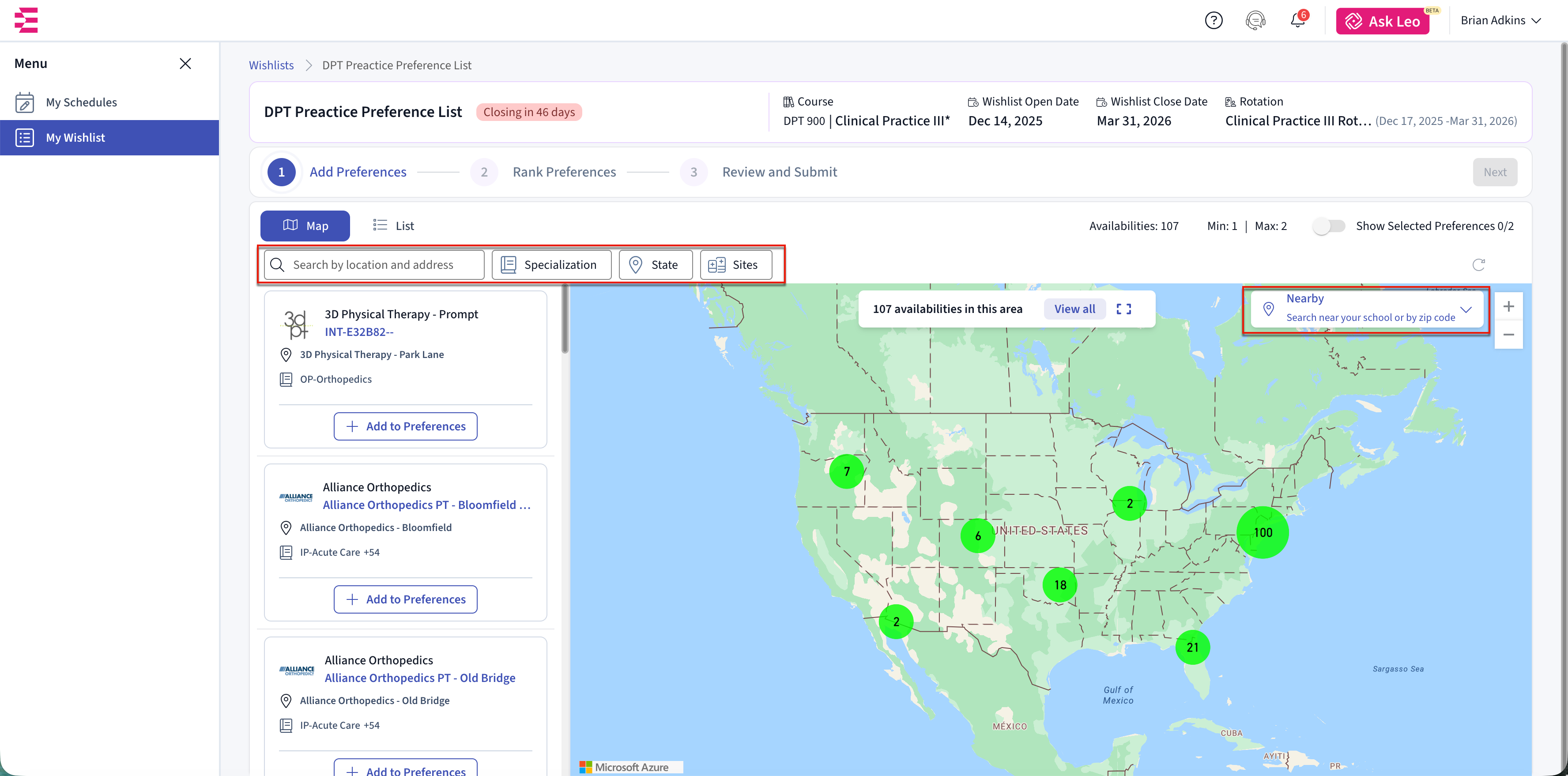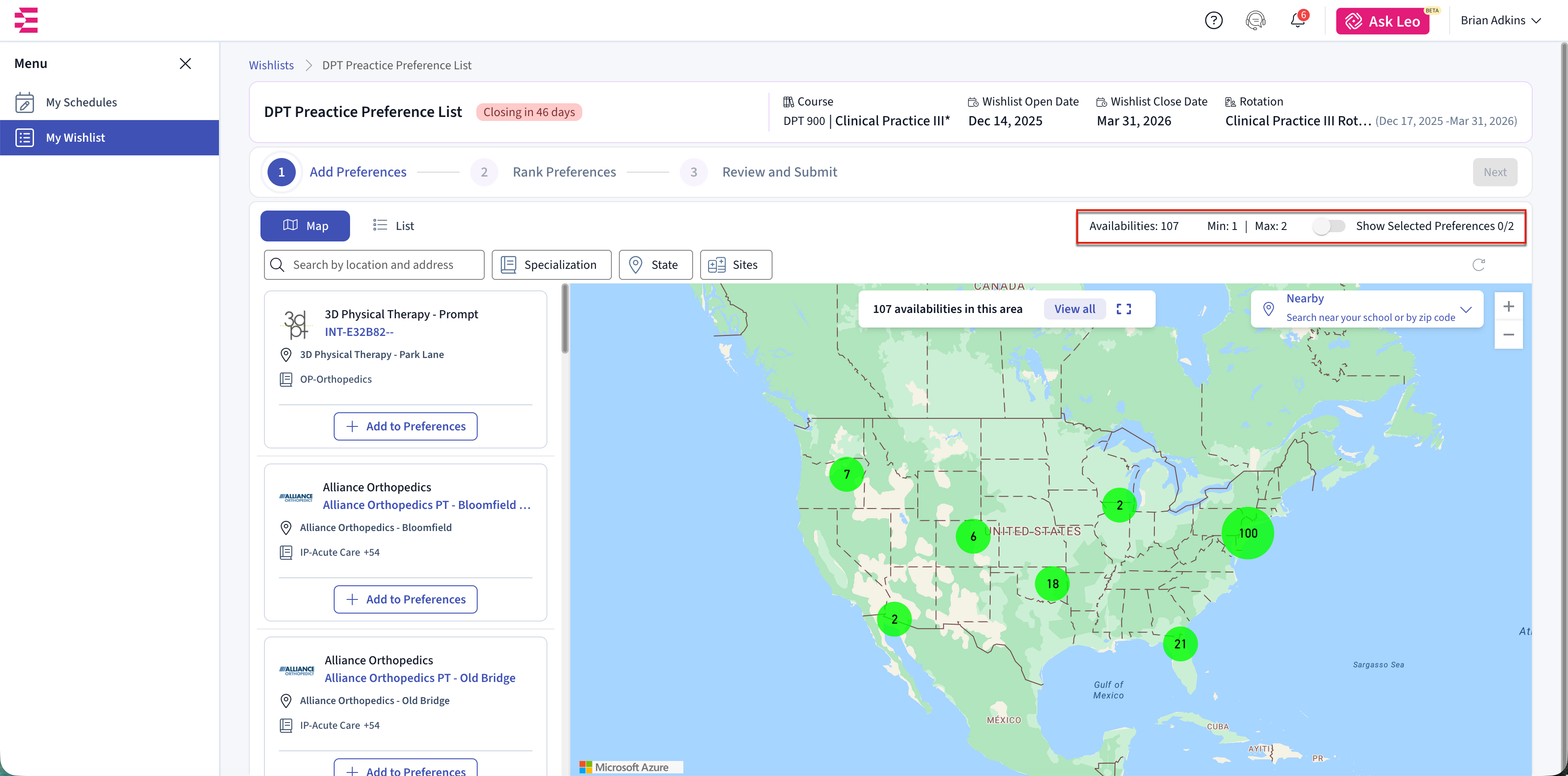 You will only see opportunities that match your rotation dates and meet your school’s requirements. Once you submit your preferences, schools use your rankings to decide which placement requests to send to clinical sites.