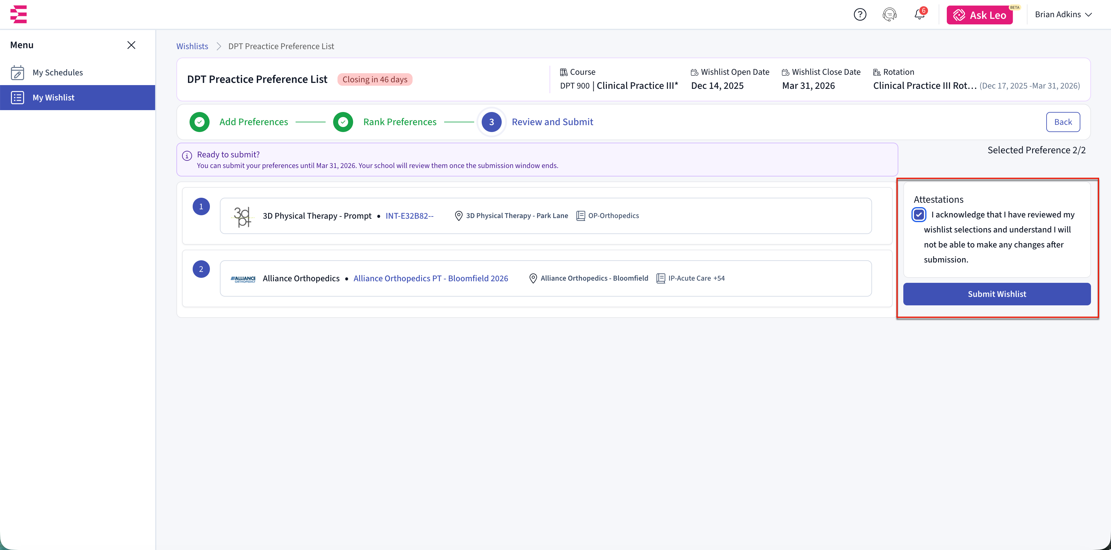 Select My Wishlist to begin submitting your preferences.