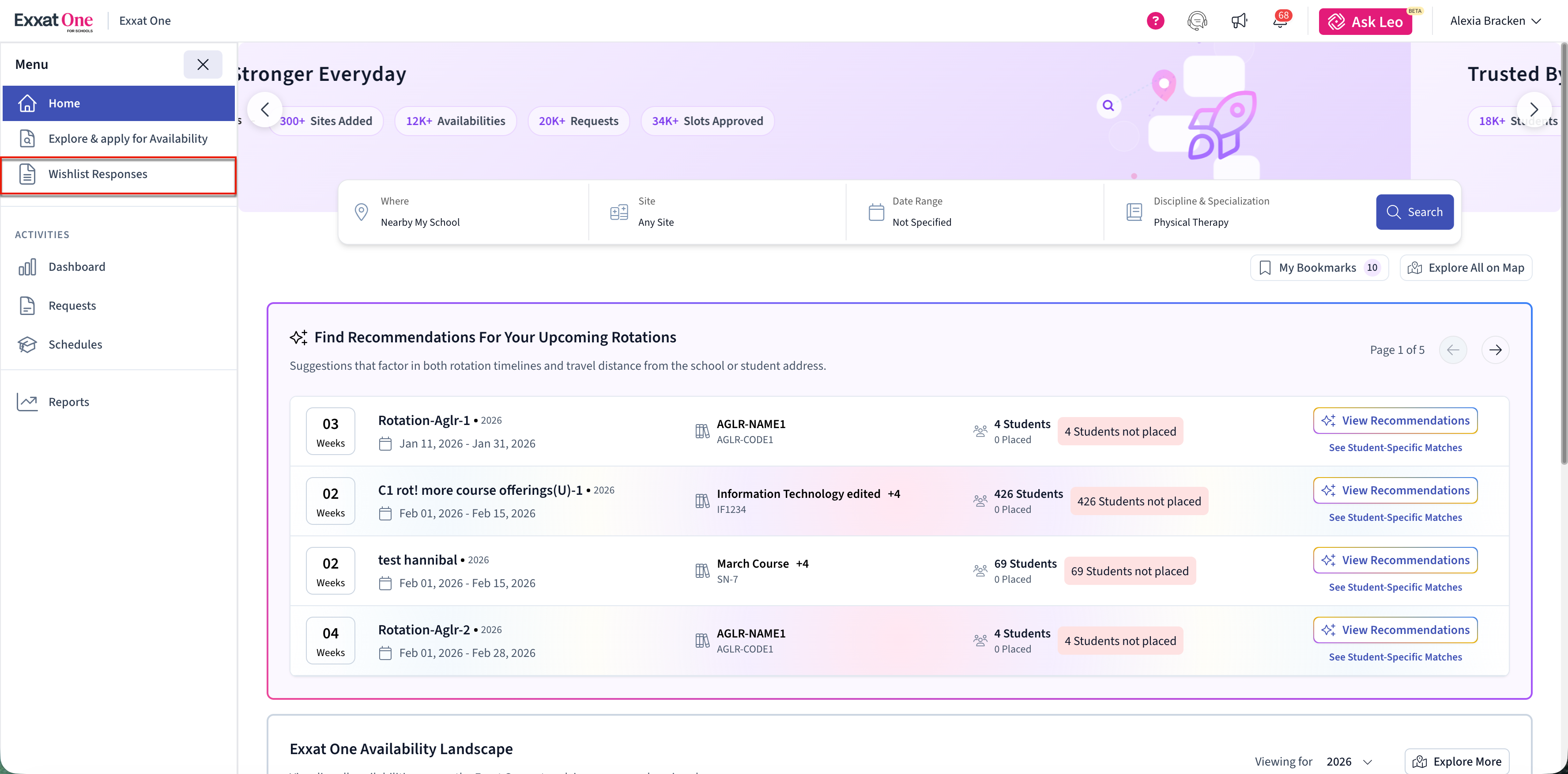 - A separate Exxat One wishlist for Exxat One availabilities