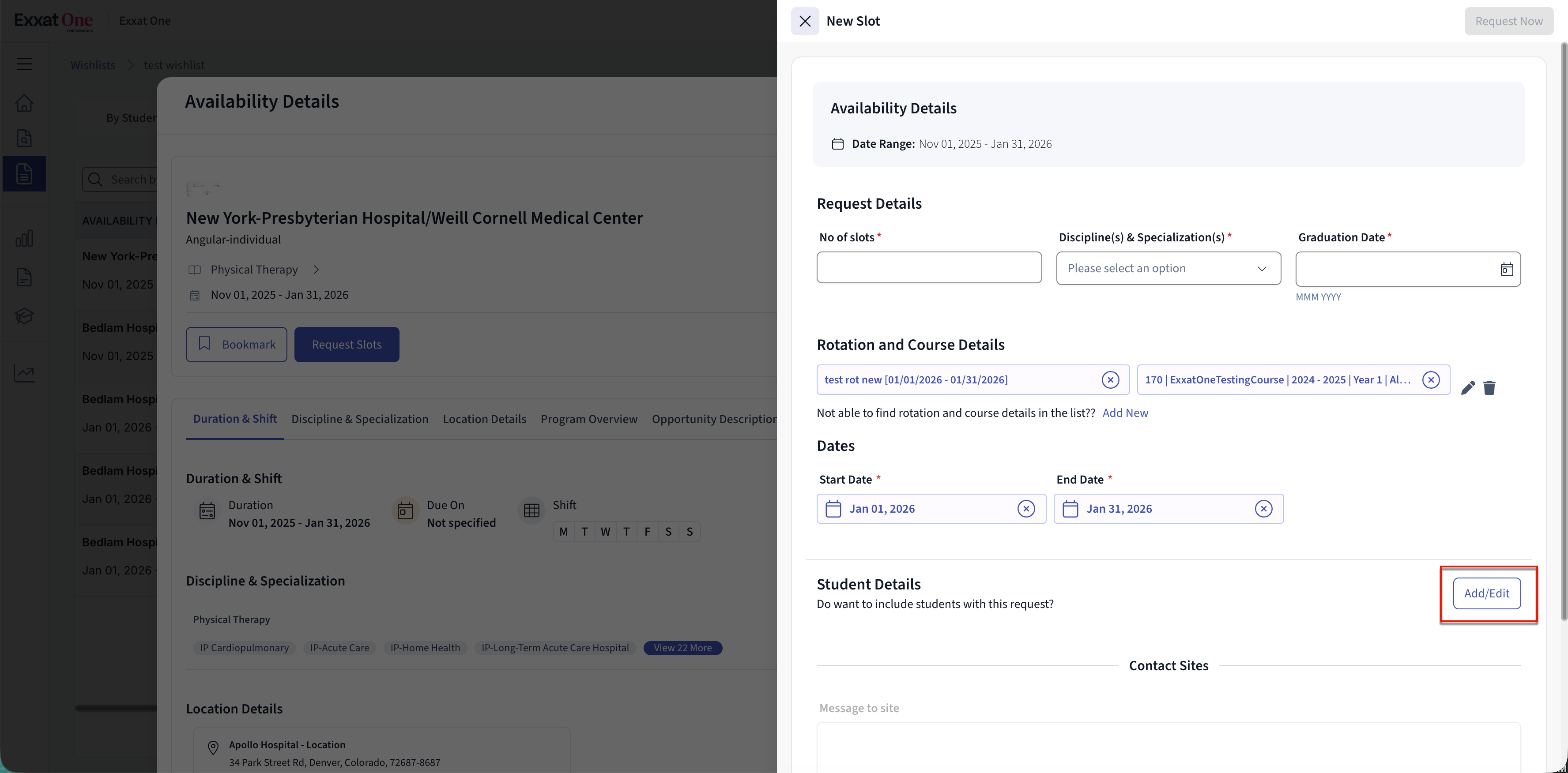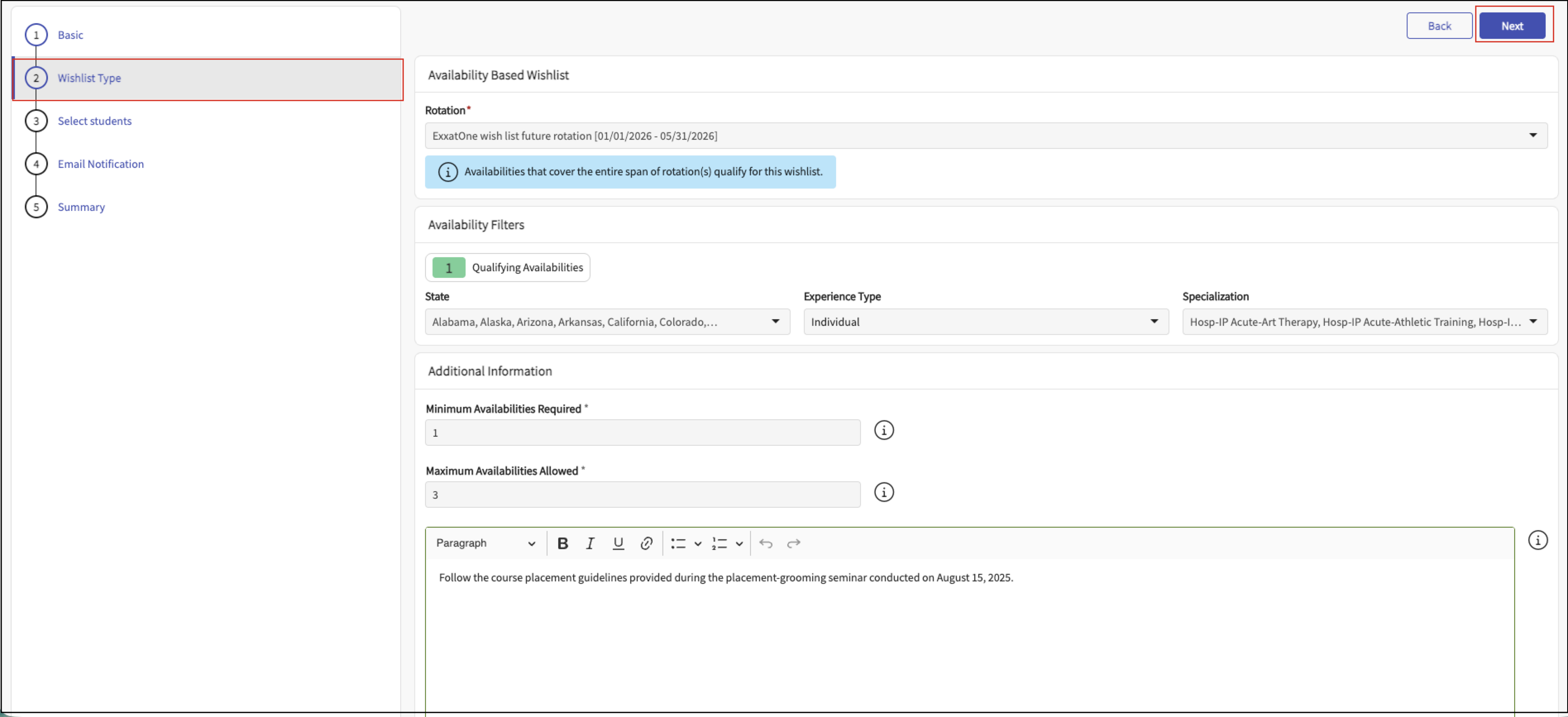 Note: For common questions and clarifications, refer to the FAQs – Exxat One Availability-Based Wishlist.