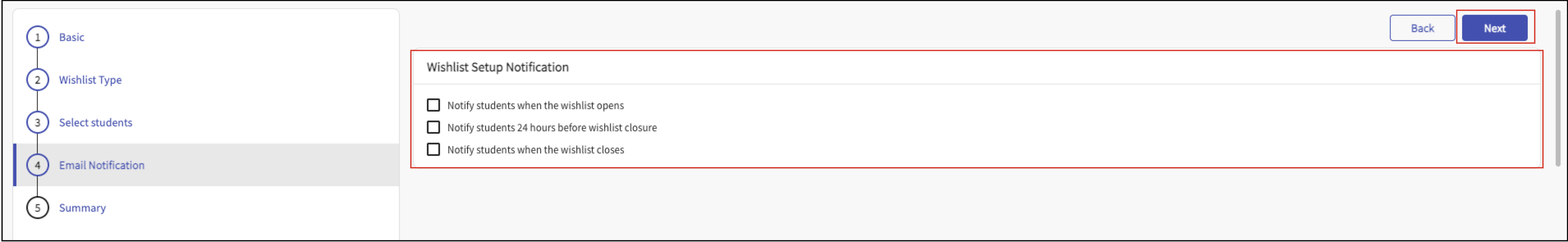 - Notify students when the wishlist opens.